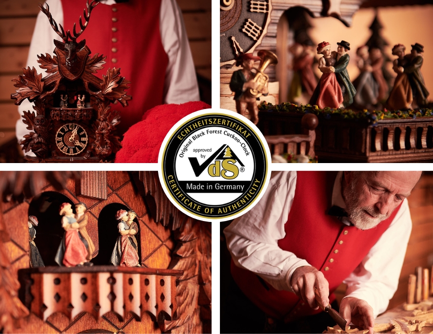 Large variety of beautiful hand-carved genuine cuckoo clocks from the Black Forest (membership in the "Black Forest Clock" certification Association), rust free movements with 2 years guarantee and world-wide after-sales service